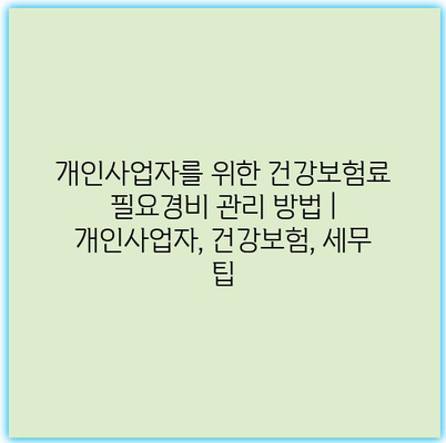 개인사업자를 위한 건강보험료 필요경비 관리 방법 | 개인사업자, 건강보험, 세무 팁 에 대해 자주 묻는 질문 TOP 5