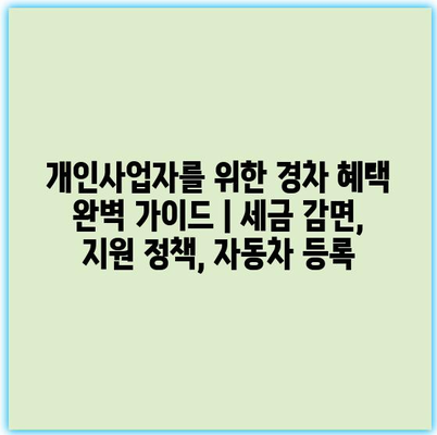 개인사업자를 위한 경차 혜택 완벽 가이드 | 세금 감면, 지원 정책, 자동차 등록