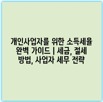 개인사업자를 위한 소득세율 완벽 가이드 | 세금, 절세 방법, 사업자 세무 전략을 통해 많은 도움이 되실 것입니다.
