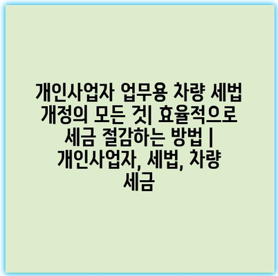 개인사업자 업무용 차량 세법 개정의 모든 것| 효율적으로 세금 절감하는 방법 | 개인사업자, 세법, 차량 세금 에 대해 자주 묻는 질문 TOP 5