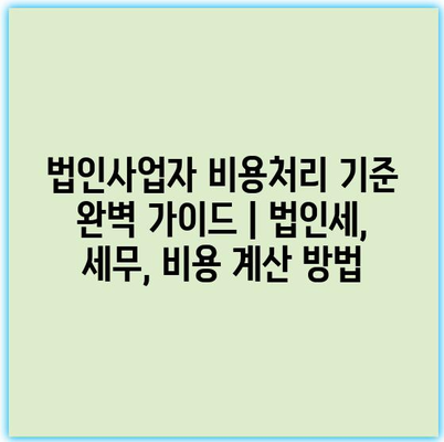법인사업자 비용처리 기준 완벽 가이드 | 법인세, 세무, 비용 계산 방법에 대한 정보를 제공합니다.