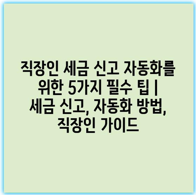 직장인 세금 신고 자동화를 위한 5가지 필수 팁 | 세금 신고, 자동화 방법, 직장인 가이드