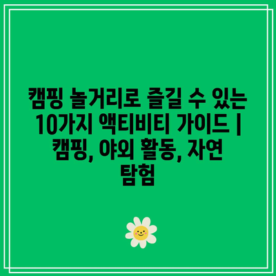 캠핑 놀거리로 즐길 수 있는 10가지 액티비티 가이드 | 캠핑, 야외 활동, 자연 탐험