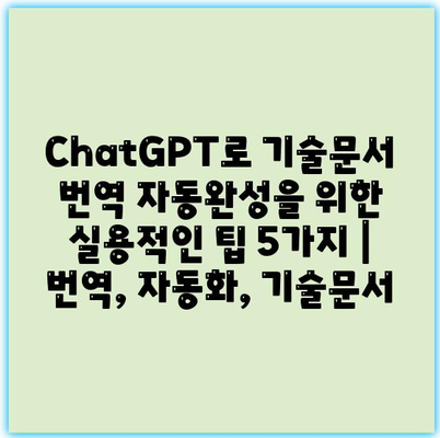 ChatGPT로 기술문서 번역 자동완성을 위한 실용적인 팁 5가지 | 번역, 자동화, 기술문서 에 대해 자주 묻는 질문 TOP 5