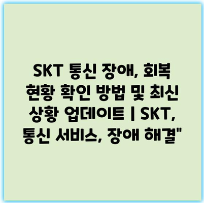 SKT 통신 장애, 회복 현황 확인 방법 및 최신 상황 업데이트 | SKT, 통신 서비스, 장애 해결”