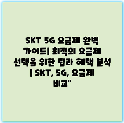 SKT 5G 요금제 완벽 가이드| 최적의 요금제 선택을 위한 팁과 혜택 분석 | SKT, 5G, 요금제 비교